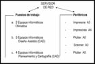realiza, optimizando la interactividad de los usuarios, de modo que un servidor aglutina toda la documentación y gestiona la actividad tanto de los equipos de usuario como los elementos periféricos (scanner, impresoras, plotter). A continuación
